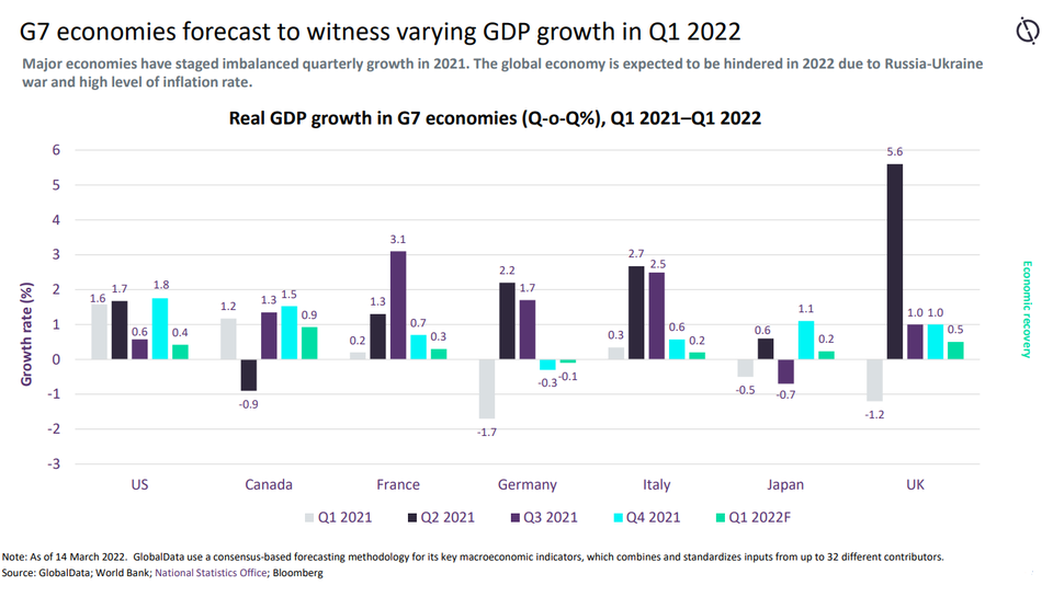 The US economic growth forecast for 2022 has been revised downward by Goldman Sachs to 1.75% from its earlier projection of 2%, as of 11 March.