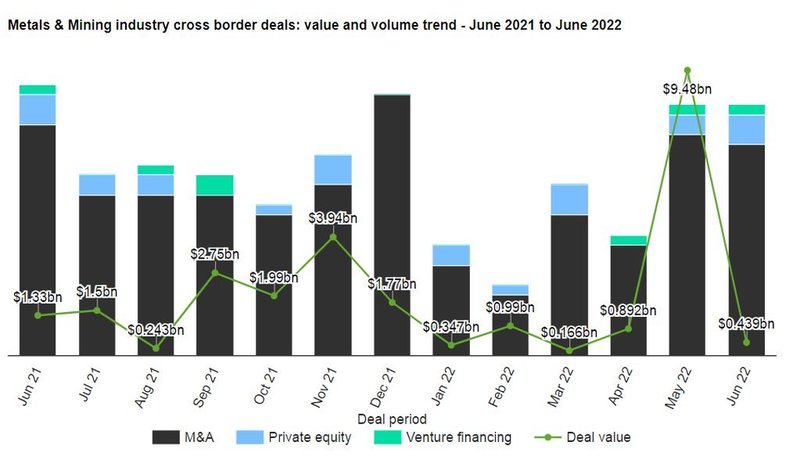 The top five metals and mining industry cross border deals of June 2022 tracked by GlobalData were: