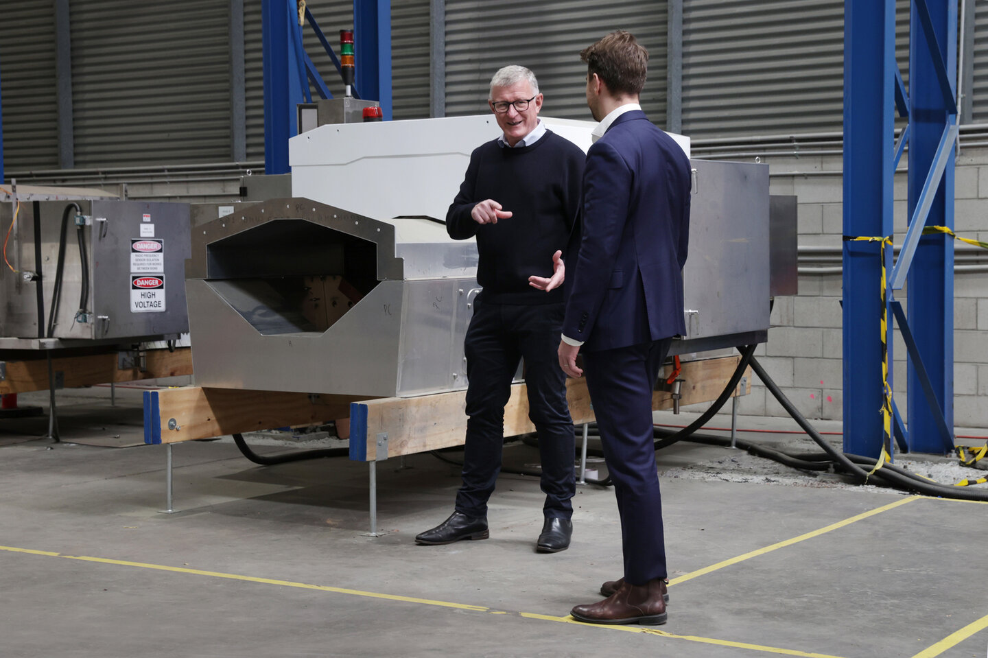 MagnaTerra chairman Rob Adamson and NextOre CEO Chris Beal with the on-conveyor magnetic resonance analyser. Credit: NextOre