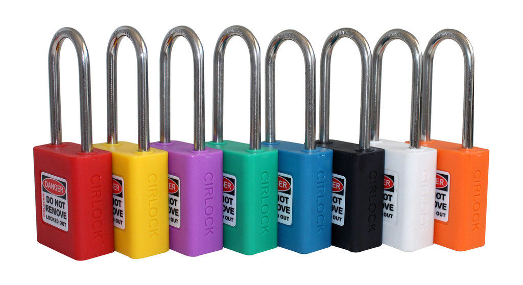 Cirlock’s own brand of tough Safety Lockout Padlocks are made with strong poly material housing with stainless steel shackle and brass keyway. These locks are available in eight different colours, and may be master-keyed, keyed alike or keyed different in any combination. Locks can be personalised with logo or names, either engraved or on labels. Photo ID can also be supplied. Padlocks are also available with a non-conductive shackle for better electrical insulation and lighter weight.