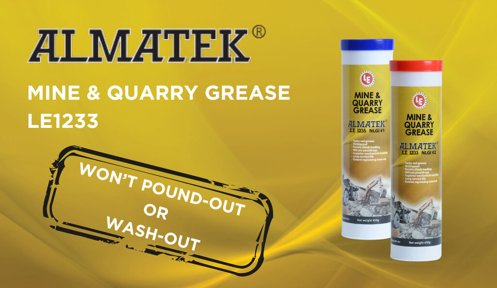 Choosing the right lubricant is the foundation of an effective maintenance program. Heavy machinery used on mine sites like haul trucks, crushers, and underground digger rigs operate under extreme loads, high temperatures and harsh conditions. Using the correct lubricant ensures optimal performance and reduces wear and tear. Lubrication Engineers® offers high-performance lubricants designed to withstand extreme conditions - reducing re-lubrication frequency and extending equipment lifespan. Their advanced formulations help industries optimise their lubrication strategy, minimising operational costs. Almatek® Mine & Quarry Grease LE1233 is engineered to stay where it’s applied. With a high level of tackiness, it won’t pound out or wash out, even in the harshest environments.
