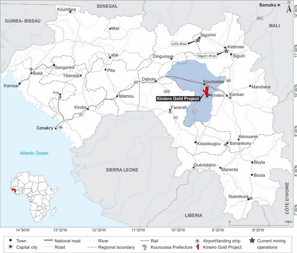 The Kiniero gold project involves restarting open-pit mining operations at the historic Kiniero gold mine in the Republic of Guinea, West Africa. The brownfield project is being developed by Canadian mining company Robex Resources.