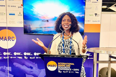 Caption: Dr Patience Mpofu speaking at IMARC in November 2023. Credit: IMARC