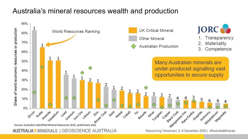 He points to the agency’s tracking of 599 critical mineral deposits across Australia, of which only 47 have operating mines, while 76% remain undeveloped.