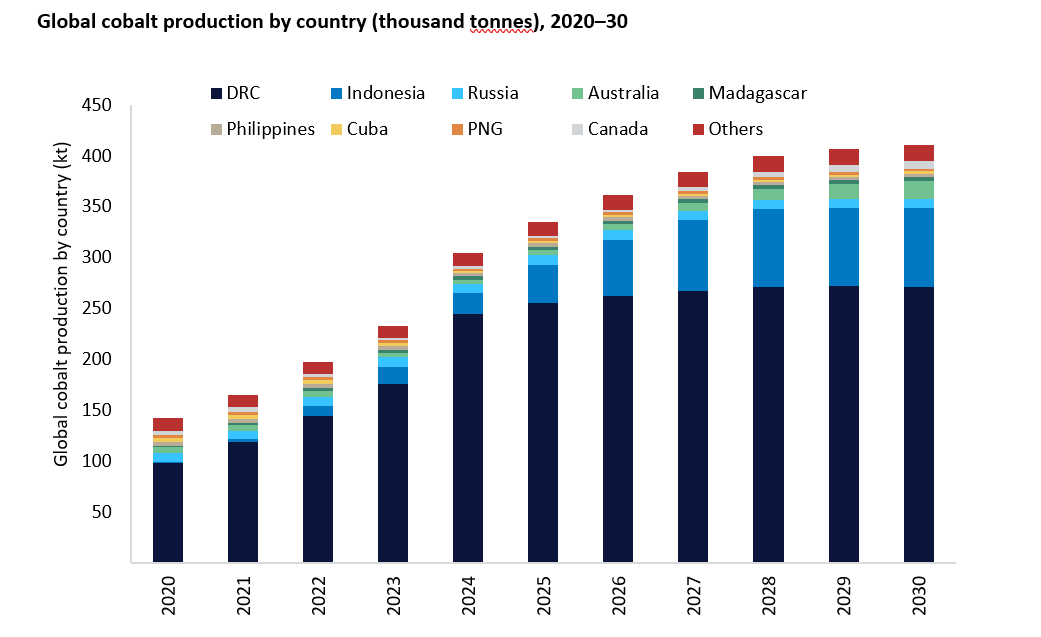 The Democratic Republic of Congo (DRC) remains the dominant player, accounting for over 80% of global output in 2024, followed by Indonesia.