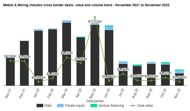 Metals and mining industry cross-border deals total $643.9m globally in November 2022
