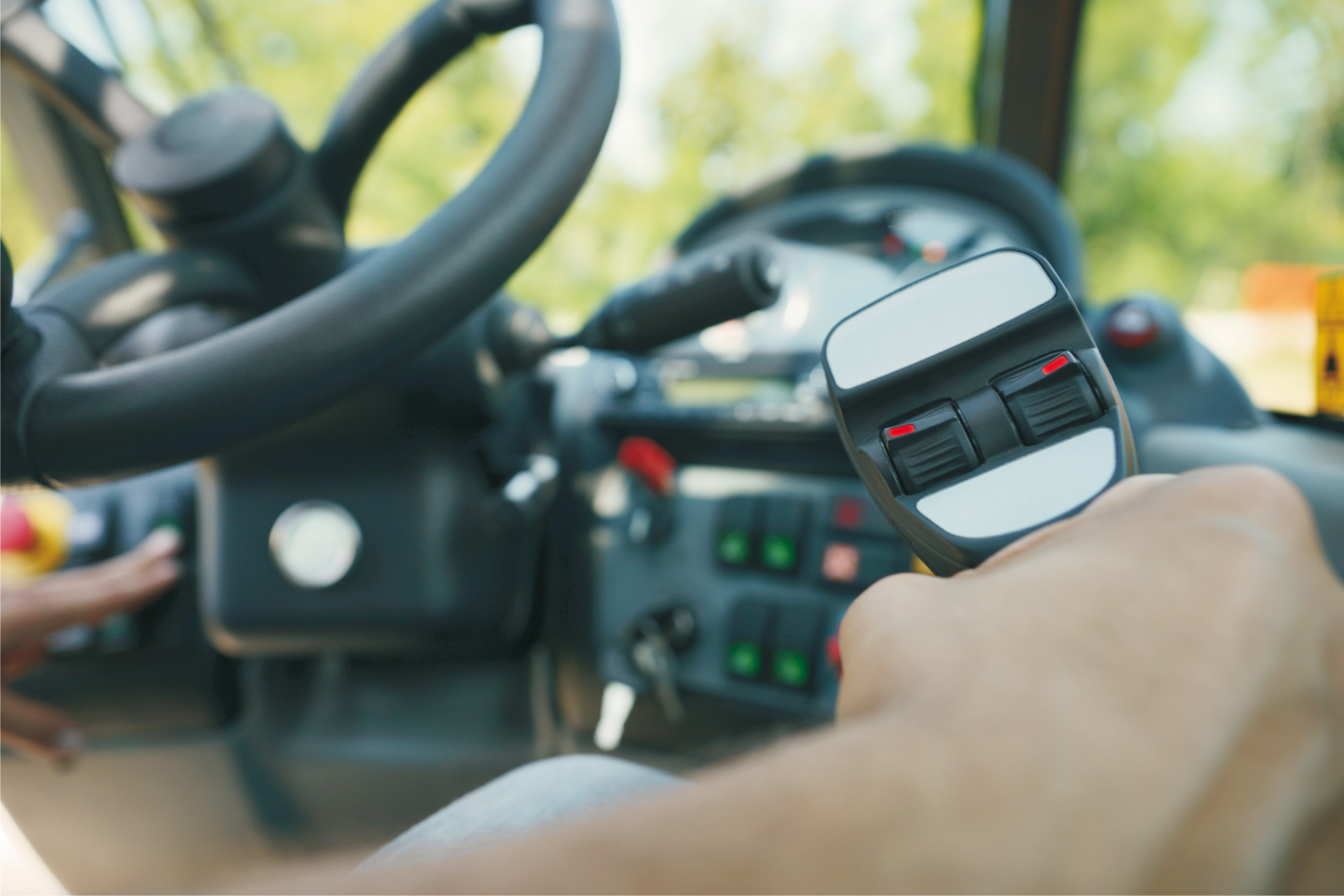 The Pegasus’ accurate and sensitive capacitive joystick with deadman sensor enables the turret rotation speed to be adjusted, while the automatic reversal system control makes it possible to travel with a 180° rotated turret for easy navigation inside narrow working areas.