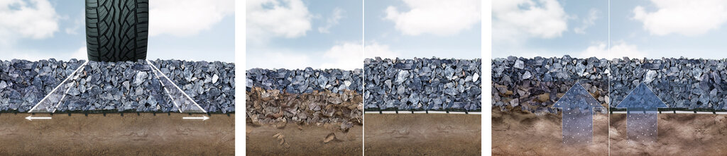 Geosynthetics provide a tried and tested solution for base course stabilisation. Including their high resistance to mechanical loads, they offer several key benefits, particularly in terms of cost-effectiveness and eco-efficiency.