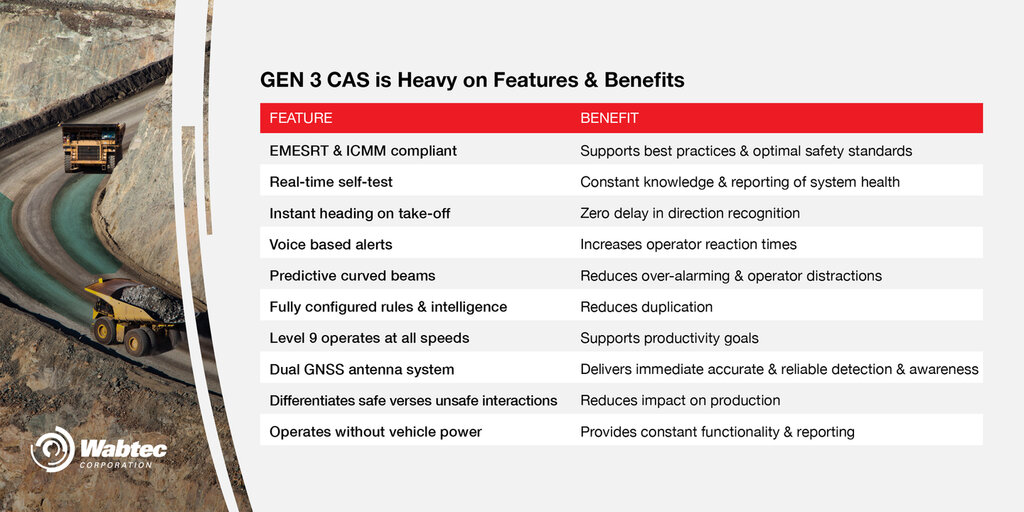 To alleviate these challenges, the world’s safest and most productive mines use Wabtec’s Generation 3 Collision Avoidance System (Gen 3 CAS).