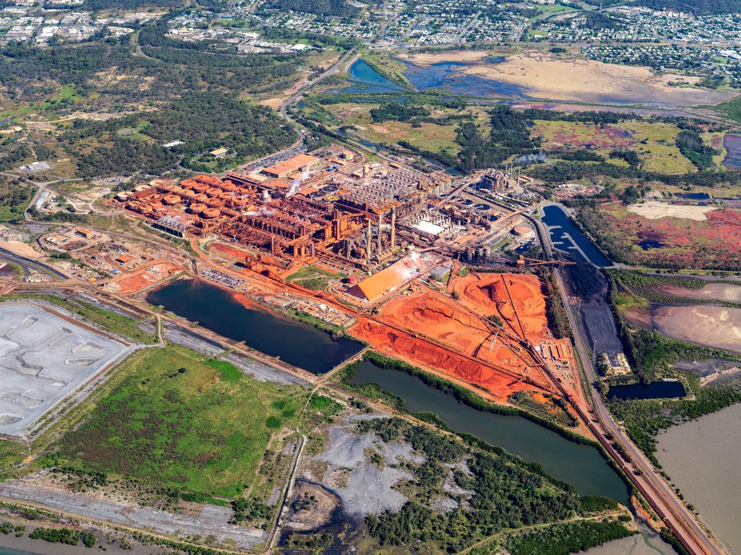 Australia operates five aluminium refineries including one at Gladstone in Queensland. Credit: Airphoto Australia / Getty Images