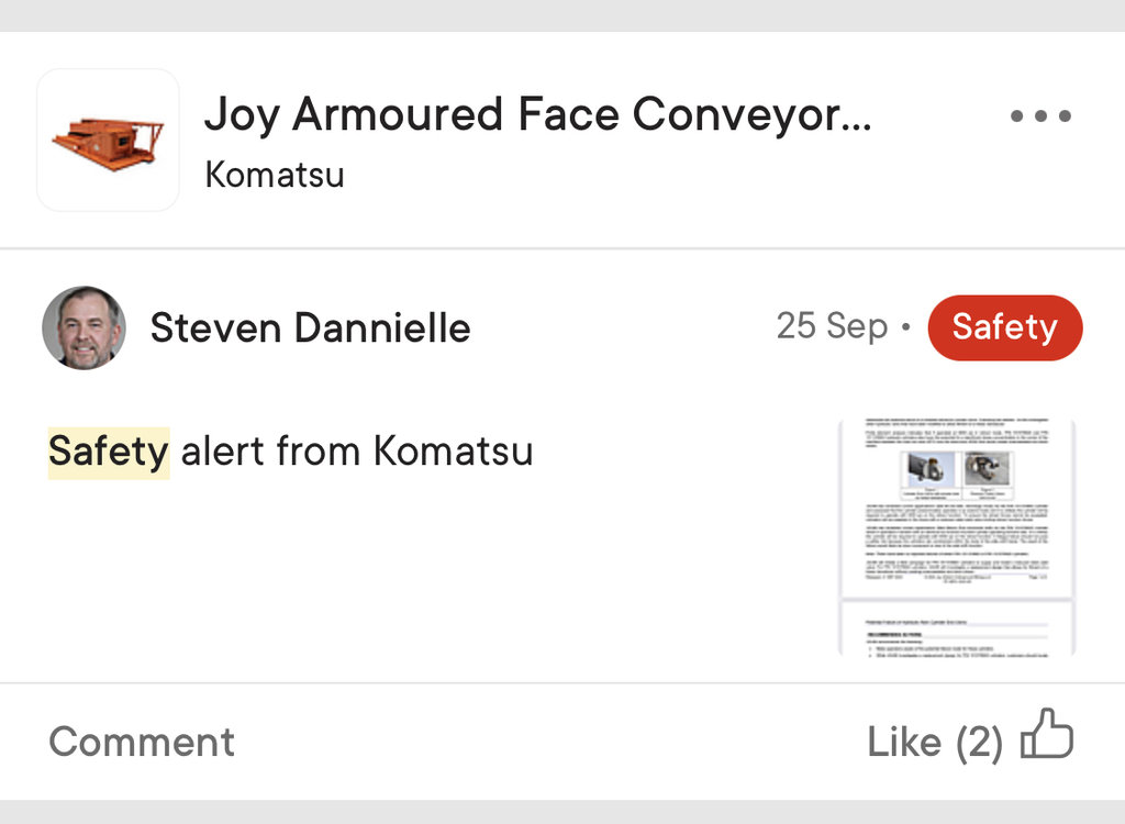 Troy: There's two parts to that. People can post general safety issues about equipment. But the biggest benefit that Torqn brings is we've got a safety alert function that's reserved for manufacturers and regulators. Anything from a legislation updates, product recalls…you don't have to worry about the mine, manufacturer or regulator having an e-mail address that's probably out of date to send critical information. They can post that alert straight into a region or worldwide, or into a particular industry.