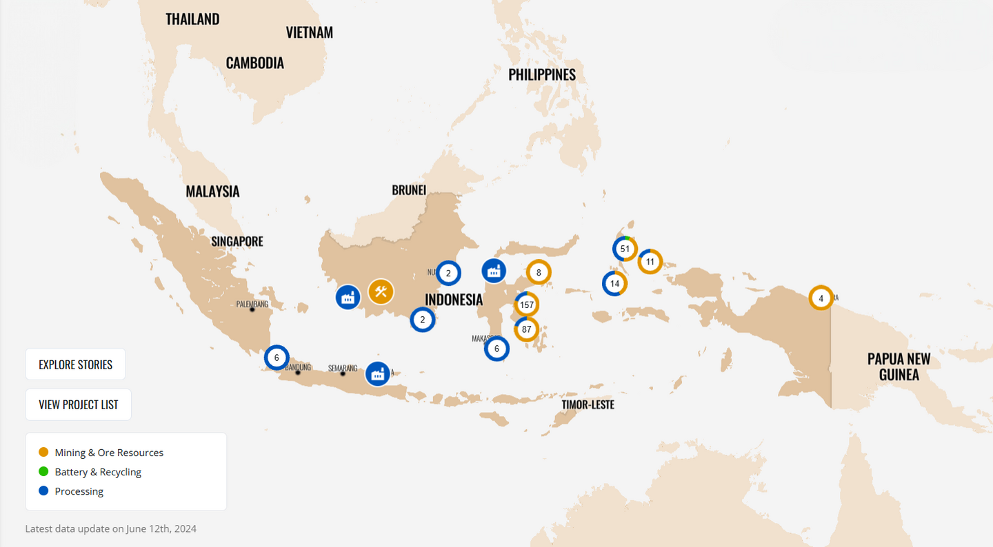 A map of the 357 nickel mining projects across Indonesia. Credit: China-Global South Project