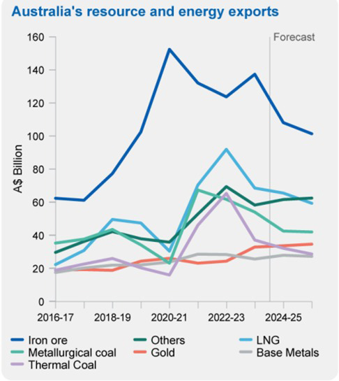 Australia exported A$673.28bn ($456.88bn) worth of goods and services in 2023, with iron ore and coal exports taking up the top two spots, accounting for 20.2% and 15.2% of the total, respectively.