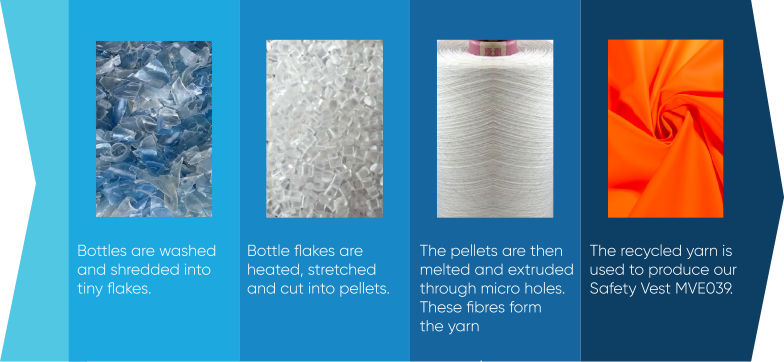 As part of Blackwoods’ journey in relation to circularity, we have begun the development of a polyester vest in which the content is made from 100% recycled post-consumer plastic bottles. In collaboration with our customers, we aim to expand our recycled content apparel range to polo shirts and rainwear, ensuring our Hi-Vis WorkWear continues to keep pace with advances in technology and design.