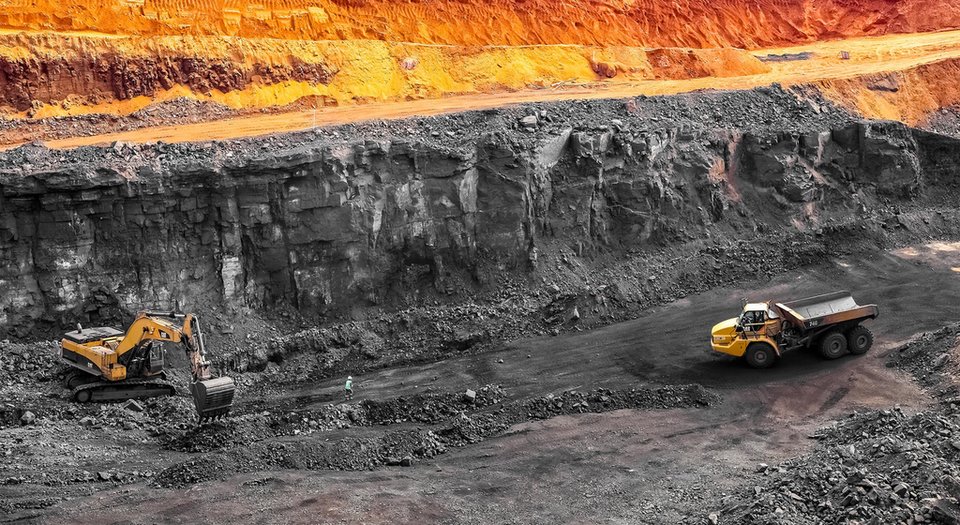 // Main image: Kuruman, South Africa - April 20 2012: Excavator working in an Open Pit Manganese Minea