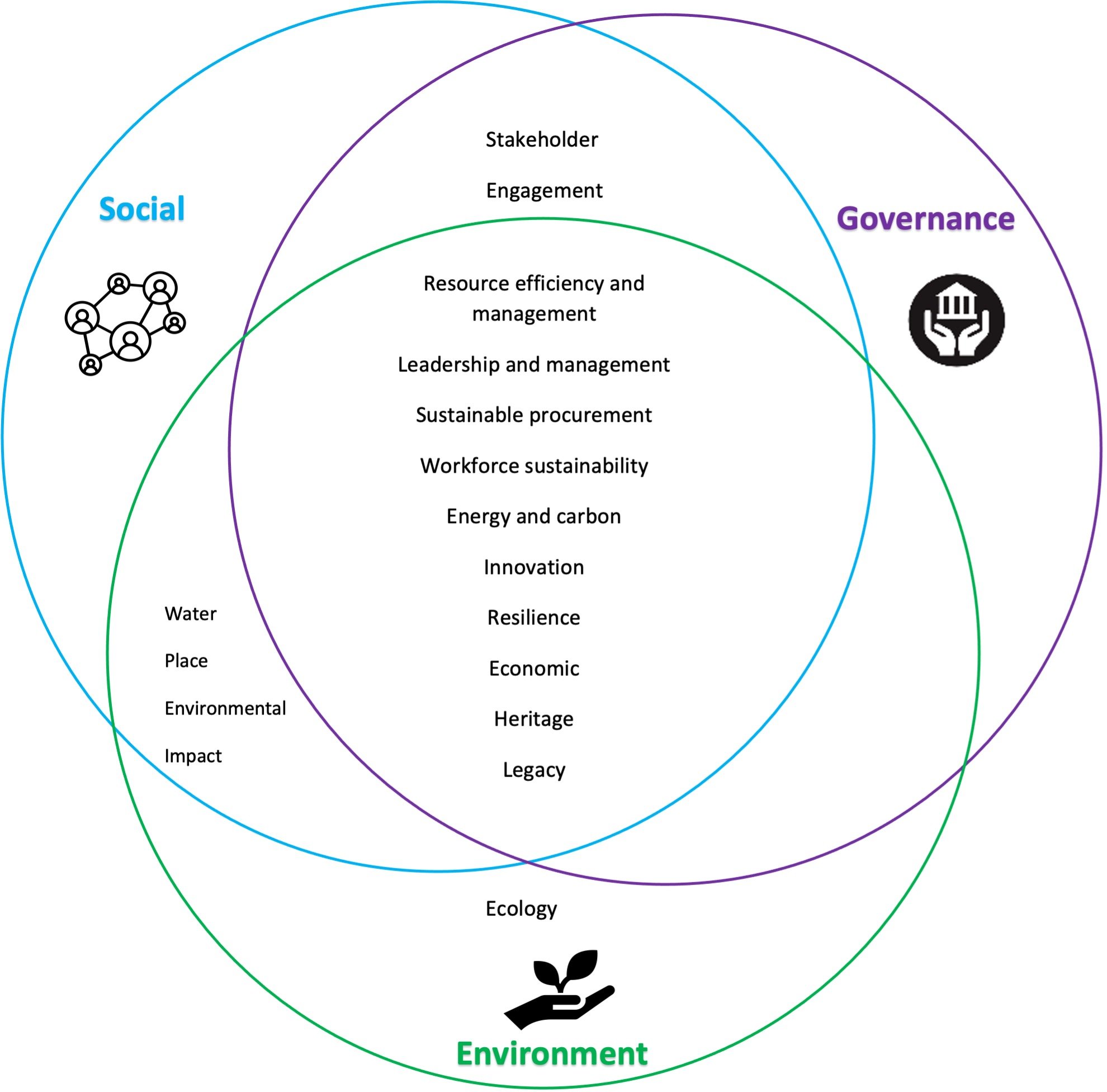 Core ESG principles of environmental, social and governance, correlate with the ISC Rating Scheme’s four themes of governance, economic, environmental and social.