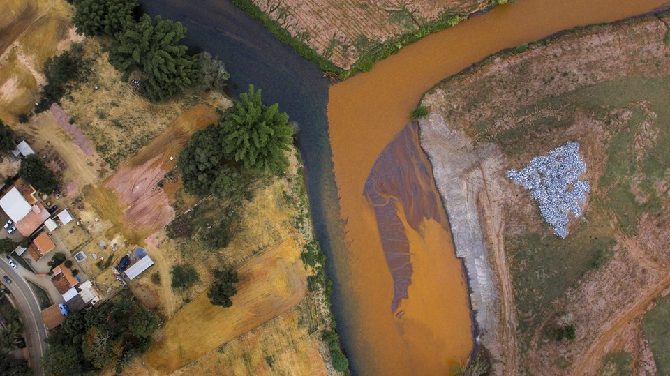 // Main image: The Gualaxo do Norte river, polluted with mining tailings mud, meets the clean Carmo river in Barra longa, 80km from the epicentre of the Samacro disaster, 1 November 2016. Credit: Gustavo Basso / Shutterstock.com
