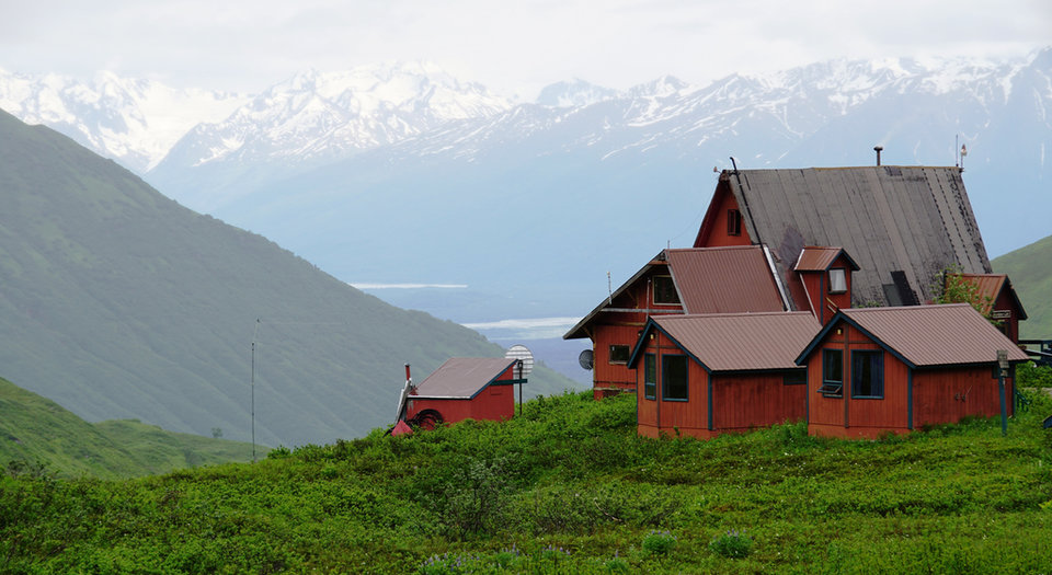 // Main image: PALMER, AK -25 JUNE 2016- The Hatcher Pass Lodge is a cabin lodging located in the Talkeetna mountains near Independence Mine State Park and the Hatcher Pass Scenic Drive.