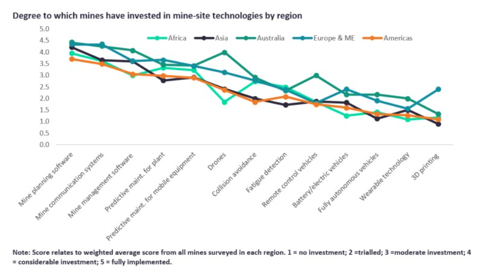 Together with Africa, mines in Australia also had the highest expectations overall in terms of investment across all technologies, suggesting it is likely to retain its leading position in years to come.