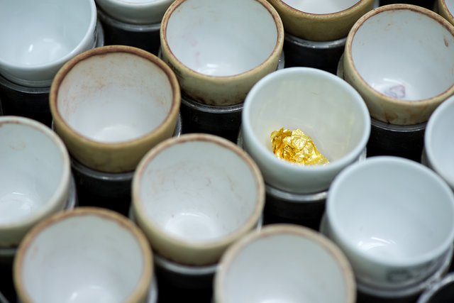 Glass Erlenmeyer flasks are suitable for most sample preparation steps and determination. In contrast, PTFE flasks are selected in case hydrofluoric acid is used, as digestion in glass vessels would result in attack of the glass recipients and therefore lead to incorrect results. After the analysis, the used sample flasks are cleaned with hot water in a washing station and can be used again.