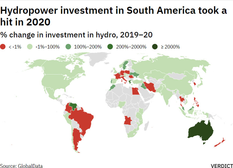 However, a comparison between 2019 and 2020 investment shows that hydropower also suffered from the impact of Covid-19, with investment dropping in Europe and South America, as well as other parts of the world.